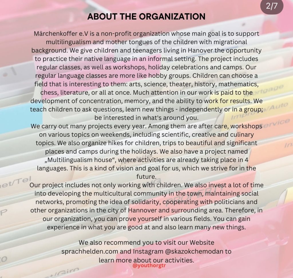 I am 21 years old. I’ve never had the chance to go abroad before. I really want to know the country, develop the language and help people. I would be happy if you lend a hand to me so that I can reach a better place.