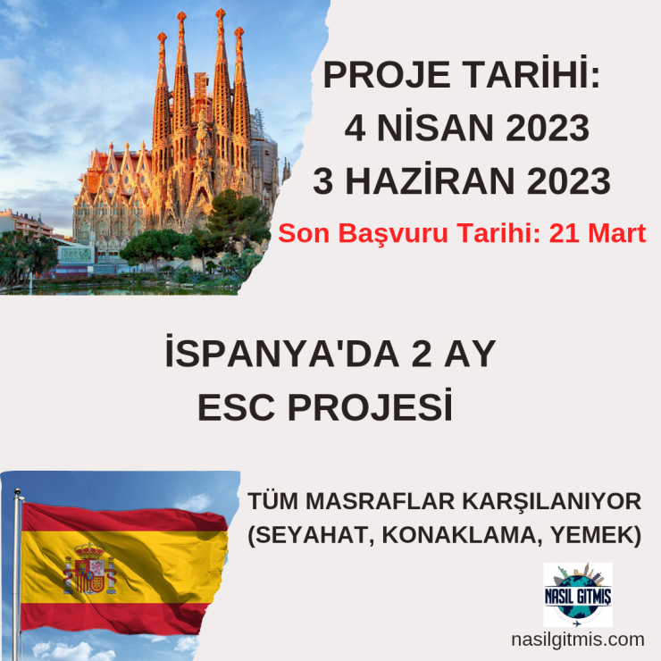 İspanya Malaga’da gerçekleştirilecek kısa dönem ESC projesi için 3 gönüllü seçilecektir. Detaylar aşağıda linklerde paylaşılmıştır. Proje duyuru metni: https://drive.google.com/file/d/1bBUt57ntSL7HZA0QdczytV3hoNiWQZNw/view?usp=share_link