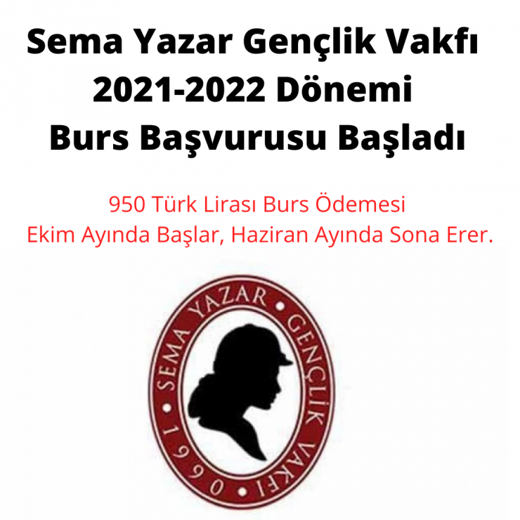 Sema Yazar Gençlik Vakfı 2021-2022 Döneminde Lisans Öğrencilerine Aylık 950 Türk Lirası Burs Verecek. Burs Ödemesi Ekim Ayında Başlar, Haziran Ayında Sona Erer.