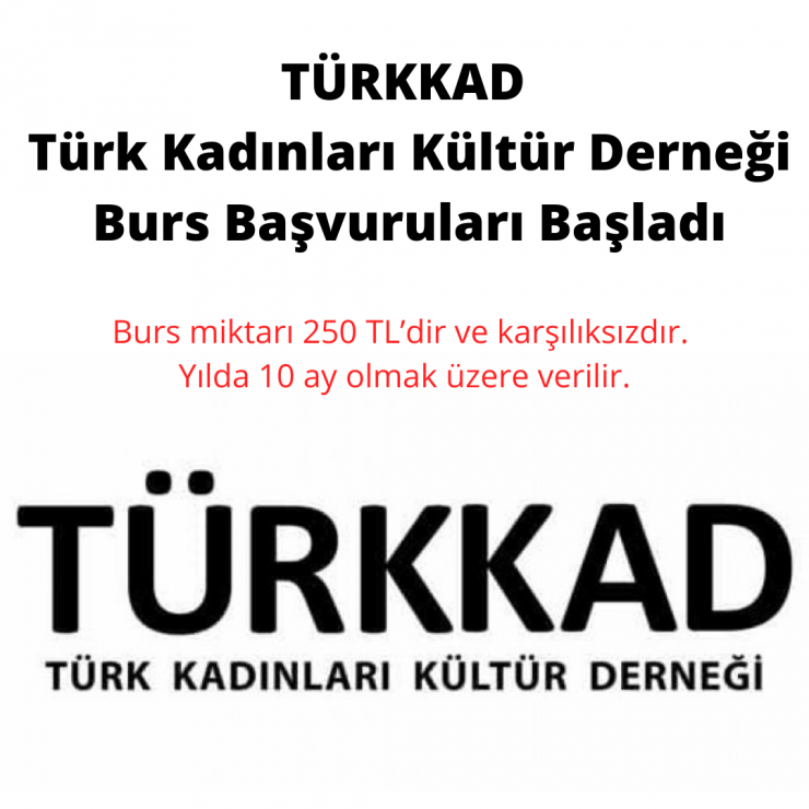 TÜRKKAD Türk Kadınları Kültür Derneği Burs Başvuruları Derneğin Resmi İnternet Sitesi Üzerinden Online Olarak Alınacak.